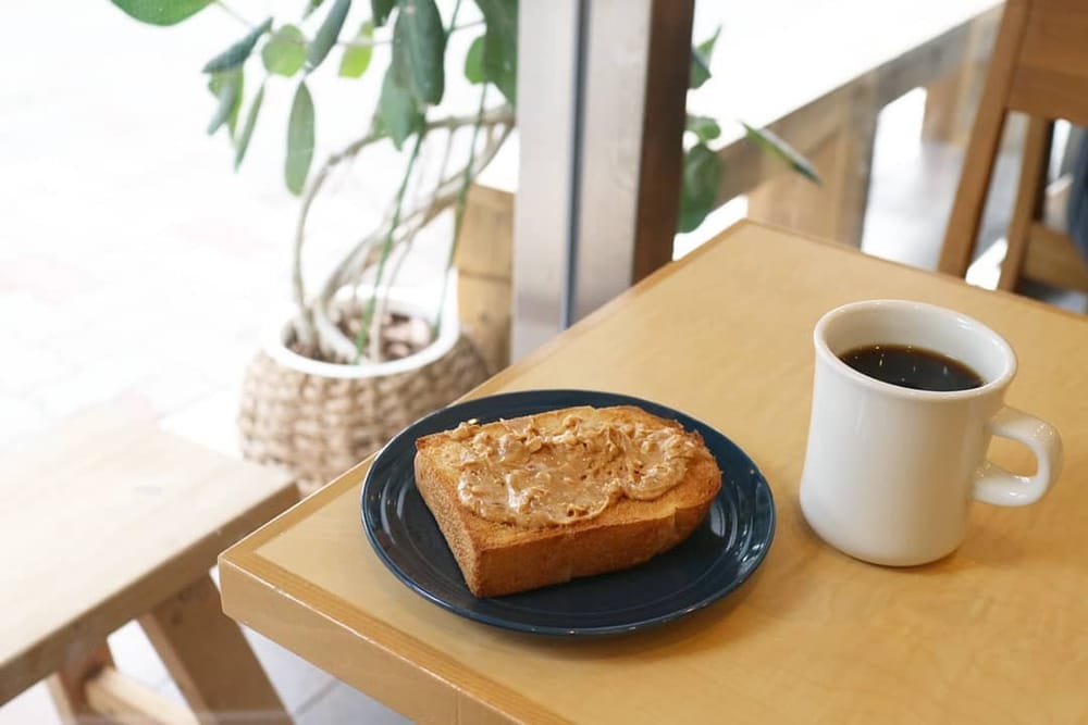 Bữa sáng đơn giản chỉ với 1 mẩu bánh mì, việc của bạn là quết 1 lớp bơ lên và thưởng thức kèm 1 tách cà phê bên cạnh.